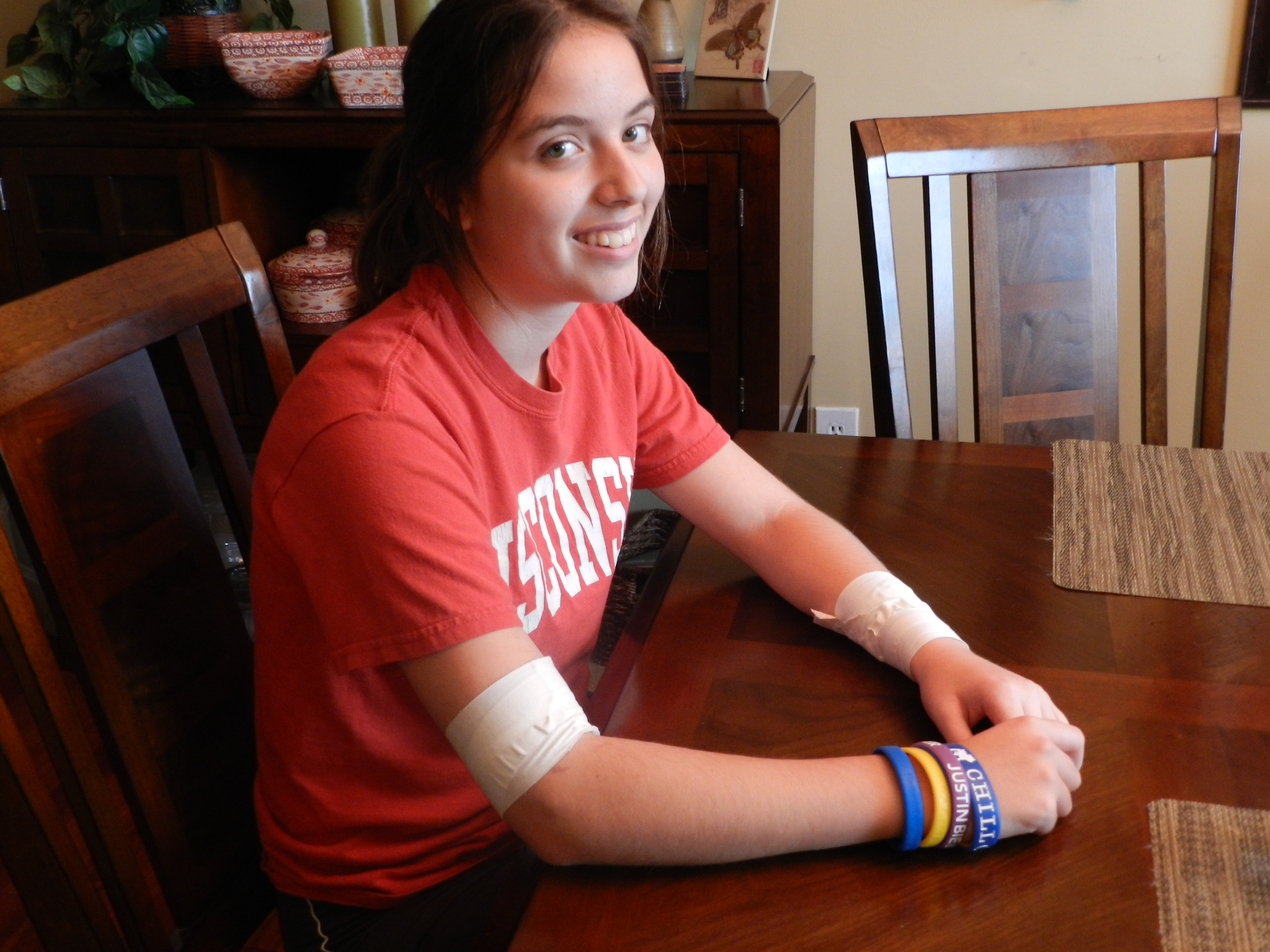 Lesson #5 When you finally muster up enough energy to do a little housework, remember your brain is in a fog. Never turn on the vacuum without warning your long-clawed, sleeping cat first. He just might leap two feet in the air and use your daughter’s arms as a spring board to land him at the front door. My daughter is nursing her wounds and will make a full recovery. Jingles, on the other hand, I’m not so sure.